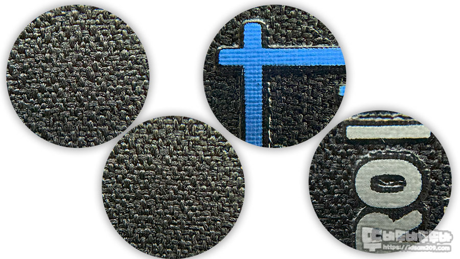 확대경으로 표면을 살펴보면 아문젠 방식의 직물을 확인할 수 있으며 X축 또는 Y축, 원형 회전, 대각선 등 어떤 방향으로 움직이더라도 일관된 움직임을 제공하며 손으로 쓰윽하고 문질렀을 때 느낌은 살짝 거친 느낌을 주지만 마우스 무빙 시 글라이딩 느낌은 이전에 아쿠아 시리즈보다 부드럽고 잘 움직이는 느낌을 줍니다.