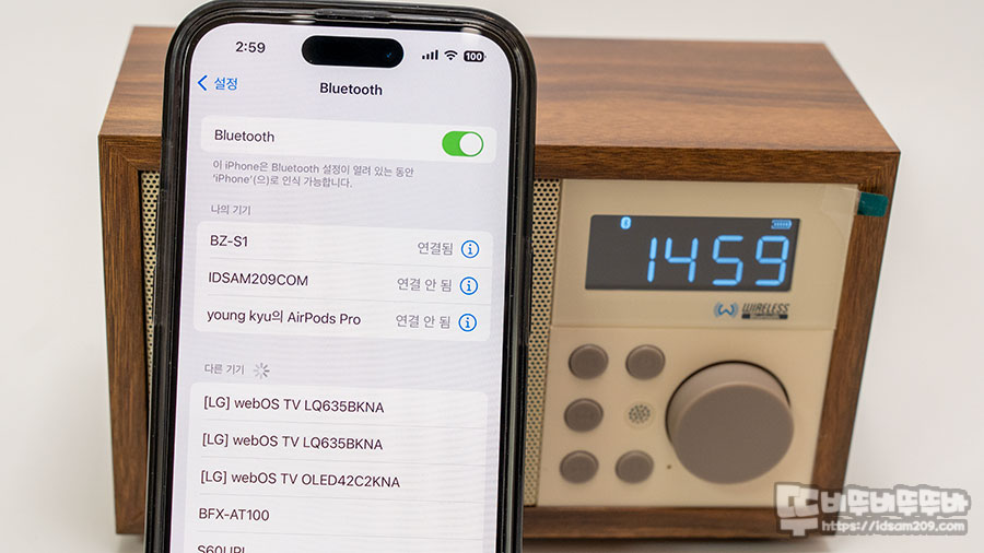 최초 블루투스 모드 진입 시 자동으로 페어링 모드로 작동하게 되는데 스마트폰에 등장하는 BZ-S1을 선택해 주면 페어링이 완료되며 이후에는 오토 페어링으로 사용하게 됩니다.