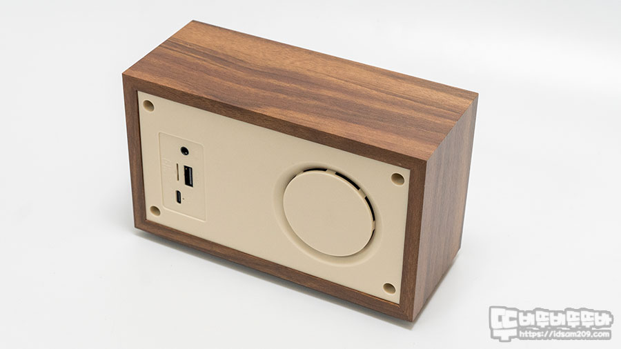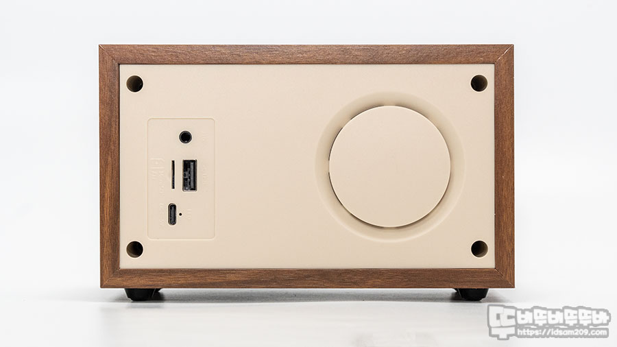 제품 뒷면에는 USB-C 충전 단자, MicroSD 슬롯, USB-A 단자, AUX in 단자 그리고 전면의 스피커 유닛 뒤쪽에는 패시브 라디에이터 구성을 확인할 수 있지만 5W 출력이라 그런지 파워풀한 느낌은 없네요.