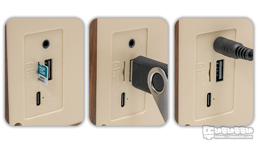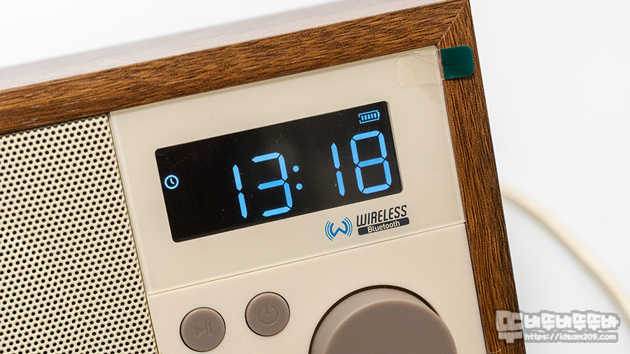 기본적으로 제품 뒷면에 MicroSD, USB, AUX 포트에 모두 연결되어 있어야 Mode 변경으로 다양한 입력 모드 선택이 가능하며 뒤쪽 I/O포트 연결이 되어있지 않는다면 블루투스, FM라디오, 시계 모드로 사용이 가능합니다.