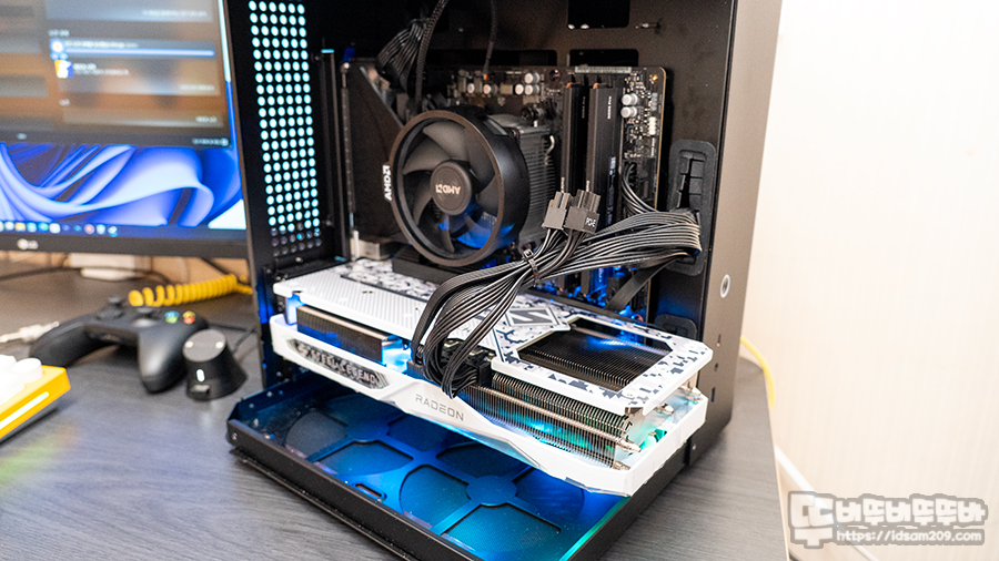 사진상의 케이스는 Jonbos TK-1 미니 케이스도 M-ATX 메인보드에 최적화된 제품이기에 대여 제품인 RADEON RX 7600XT VGA 수용이 불가능하여 오픈 케이스로 테스트하였으니 참고하시고요..