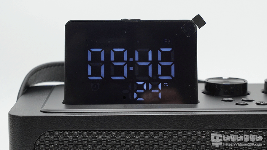 그 외에 메뉴는 눌러서 조작하는 기능으로 전원 버튼, 입력 모드 변경, 트랙 이동, 알람, 시간 설정, 밝기 조절, EQ 설정 등 조작으로 간편하게 사용할 수 있는데 그중에서 특히 시계 설정의 블루투스 페어링 시 스마트폰과 연동되어 시간을 표시하기에 기존에 별도로 세팅하는 시계 기능에 비해 시간이 정확하고 편리하게 사용할 수 있었습니다.