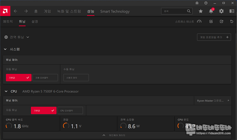 이번 시간에 살펴볼 성능 메뉴에는 시스템 튜닝 제어, CPU 튜닝 제어 등 시스템 전반의 설정을 손쉽게 할 수 있는 메뉴를 제공하는 게 특징입니다.